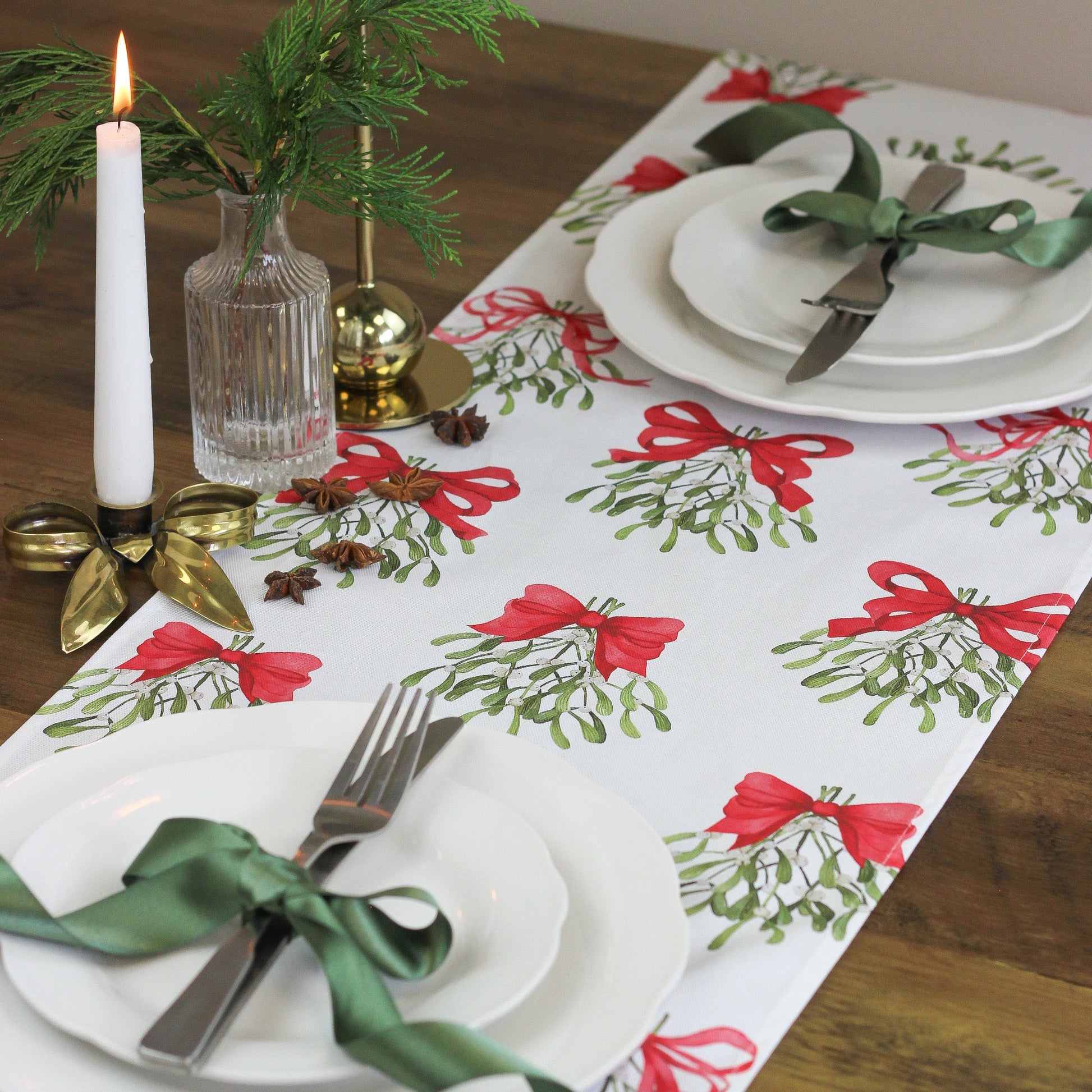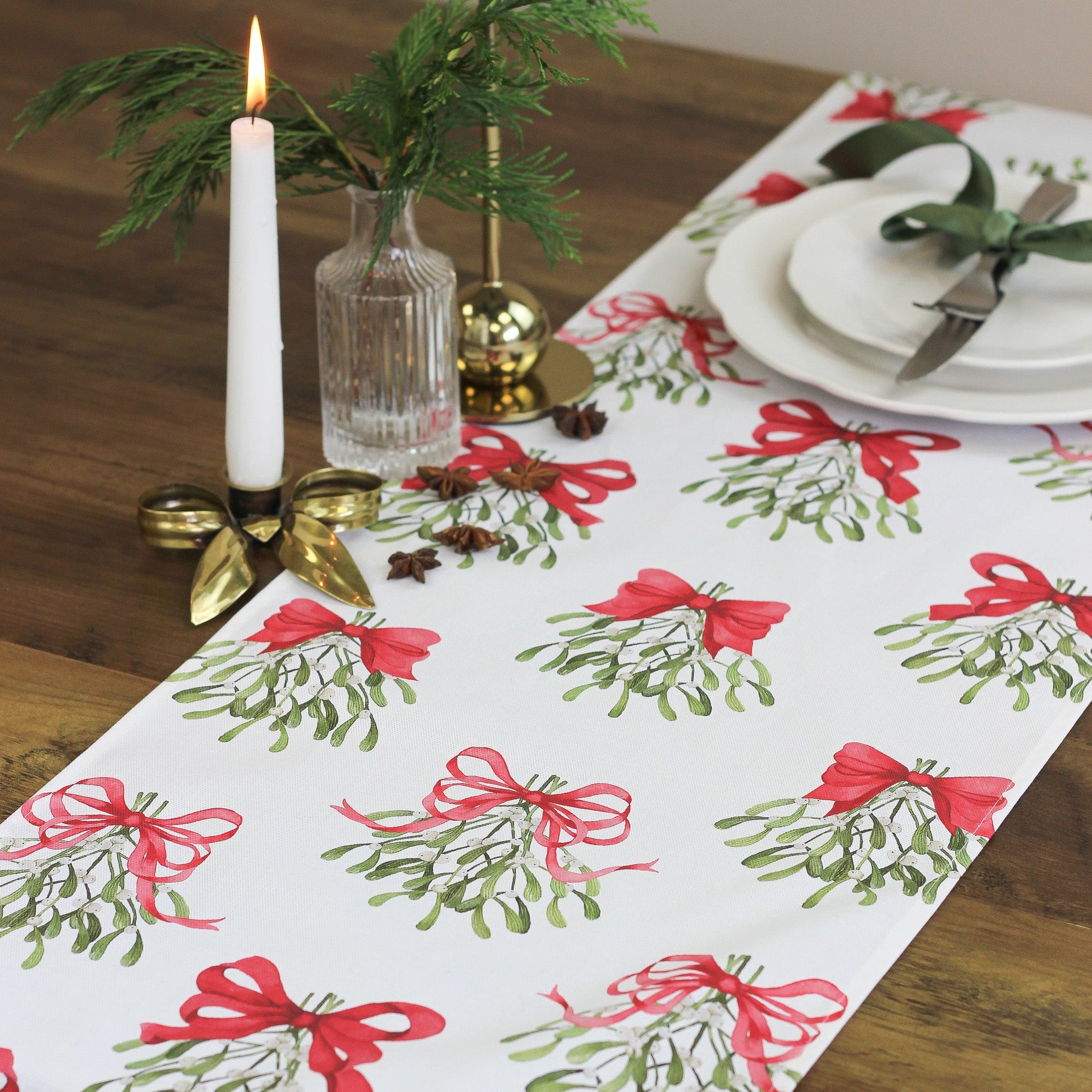 A festive favourite for those who love a bit of theatre, Cream Bows features hand-painted sprigs tied with bright red ribbons, scattered across a snowy white ground. It’s traditional without being stiff, playful without being silly — and practically begging to be tied up with your best satin bows and glassware.