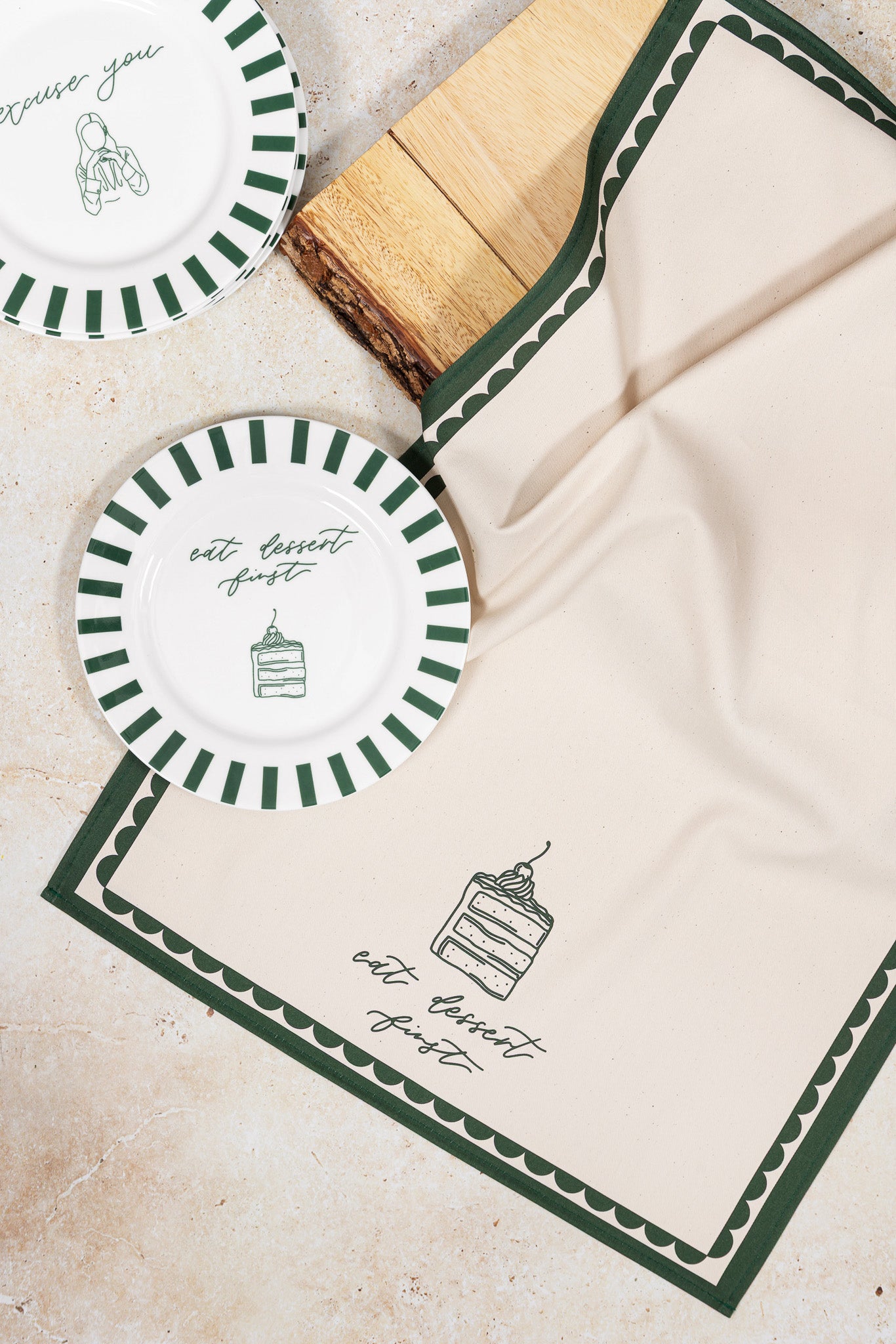 Why save the best until last? Our Eat Dessert First plate celebrates the sweeter things in life. With its bold green striped border and playful script, it’s handmade in Stoke-on-Trent using time-honoured ceramic techniques, ensuring beauty and durability at the table. Designed to be both practical dinnerware and a conversation starter, this plate will become the first one guests reach for at pudding time.