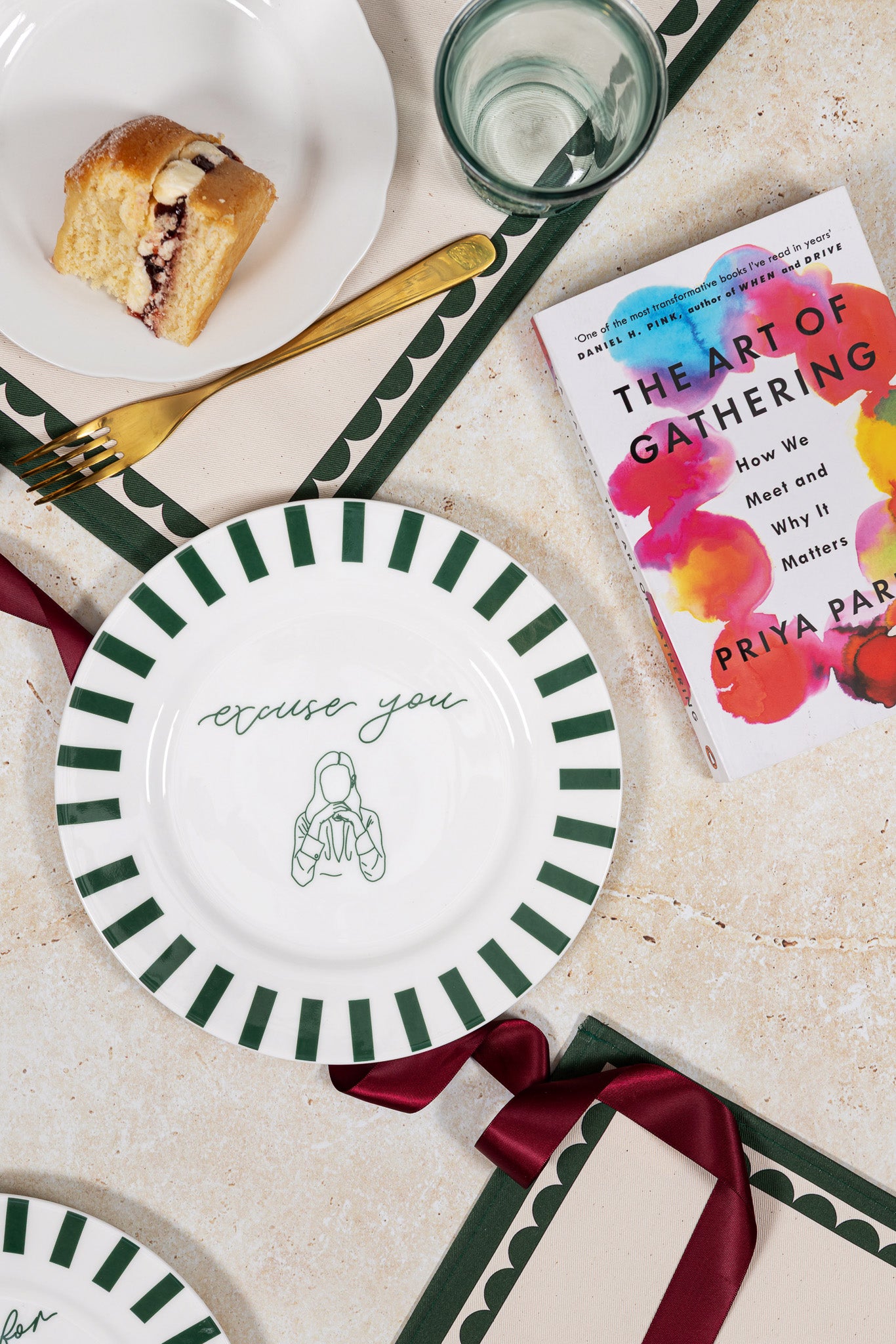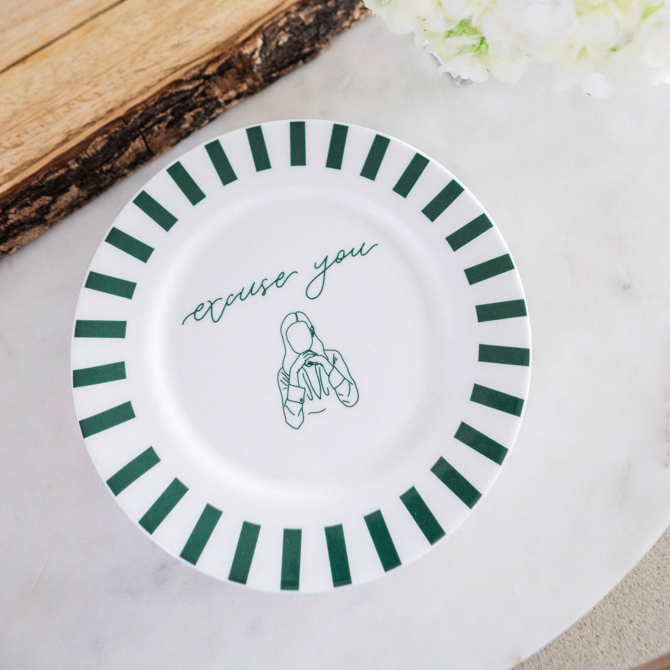 Manners maketh the dinner table. The Excuse You plate delivers a polite nudge with Avalon’s signature dry humour, offset against a traditional green stripe border. Made in Stoke-on-Trent, the home of British ceramics, this dinner plate combines craftsmanship with comedy in a way only Avalon Home could. It’s tableware designed to make guests smile between courses.