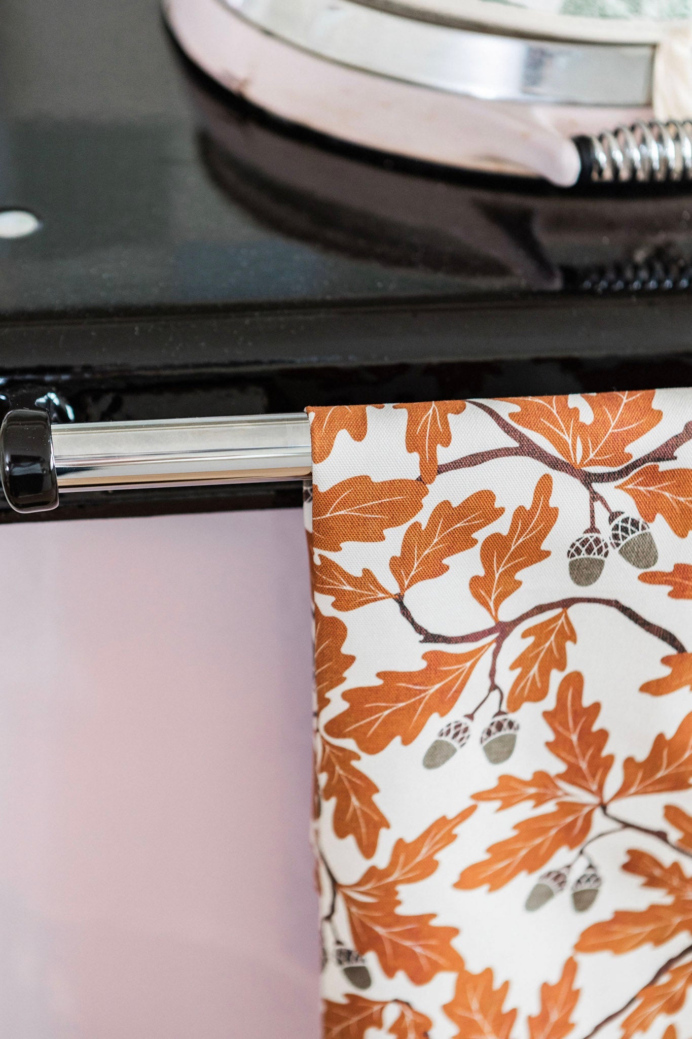A love letter to late autumn, Golden Oak is our exclusive new print inspired by the sculptural tangle of oak branches in November — just before the last leaves fall. With its warm ochre tones, inky brown branches, and soft grey acorns, it brings the forest floor indoors and turns any table into a seasonal still life. It’s bold, nostalgic, and effortlessly elegant — designed to pair just as well with your best brass cutlery as it does with a last-minute crumble.