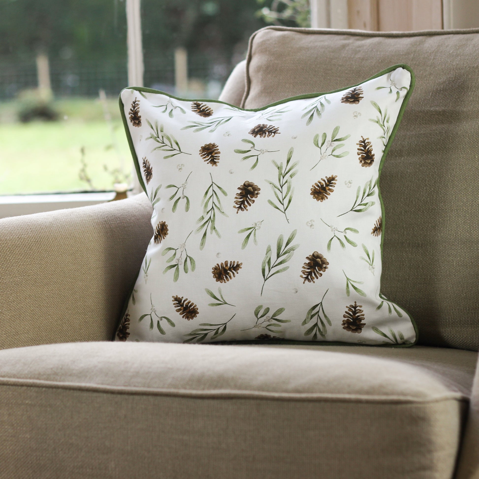 SAMPLE SALE - Mistletoe & Pine Cushion - White Berries