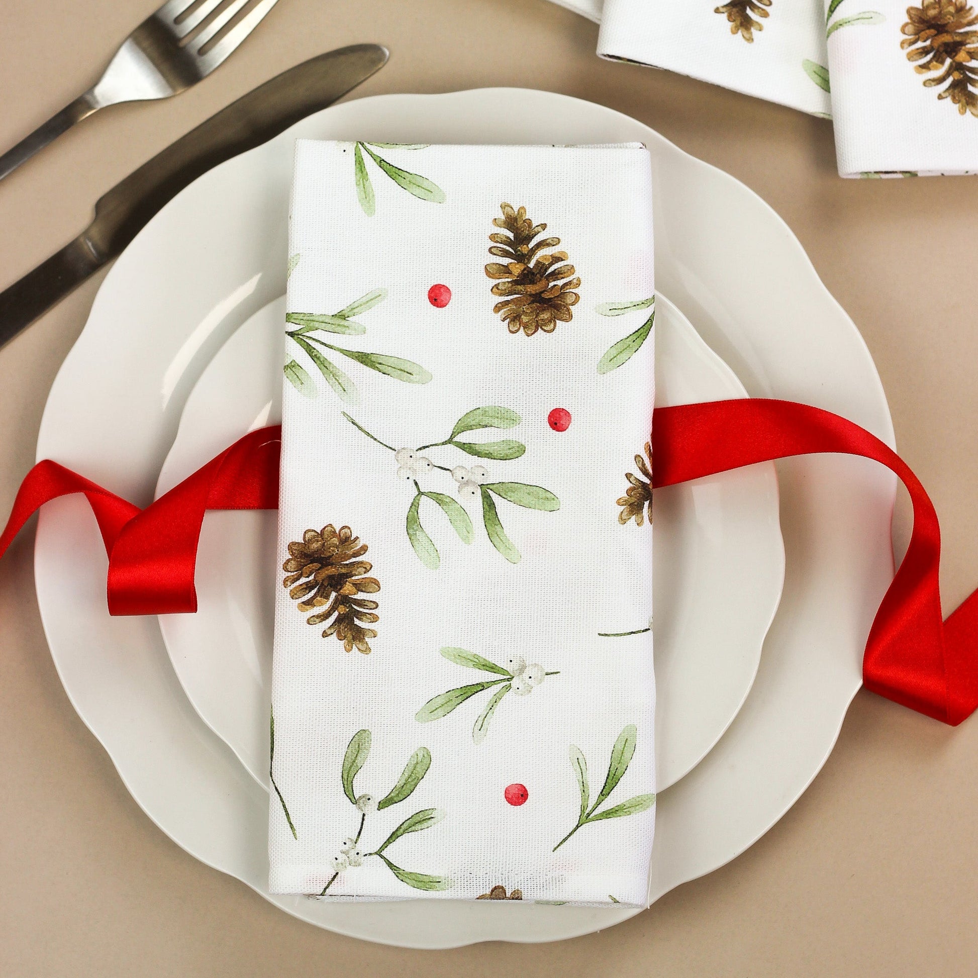 A soft winter scattering of pinecones, berries and mistletoe, Red Mistletoe is one of our best-loved festive prints — gentle, painterly, and full of seasonal quiet. A snowy white ground is peppered with delicate green sprigs, rust-toned pinecones, and cheerful clusters of crimson berries. It’s crisp, calming, and the print we reach for from the first frosts to New Year’s Day.