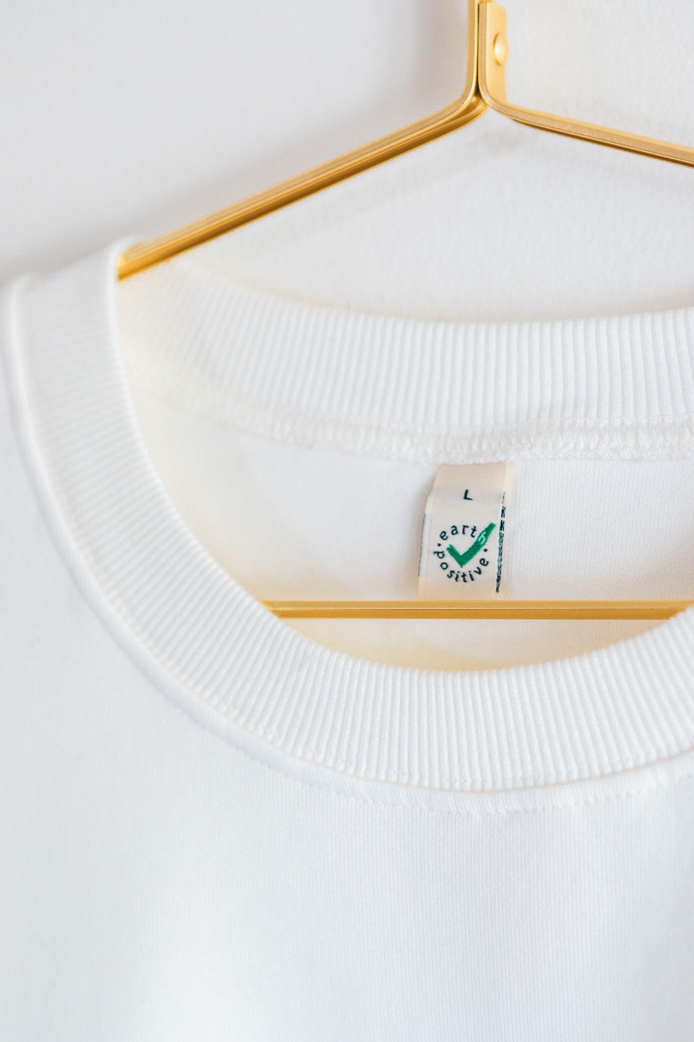Meet the sweatshirt version of your inner monologue. This strictly limited run is made from certified organic cotton with a brushed fleece lining — a cosy mid-weight layer for school runs, studio days and the general chaos of modern life.