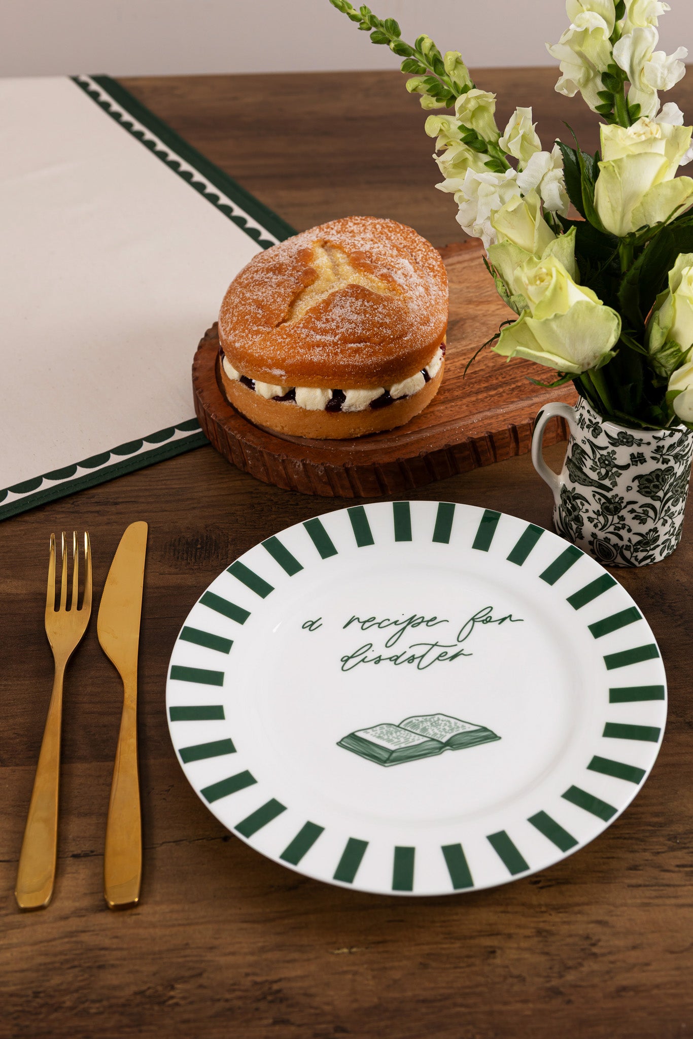 Dinner parties don’t always go to plan, but at least your plates can keep their composure. Our Recipe for Disaster plate features Avalon’s tongue-in-cheek design framed by classic green stripes, all made in the traditional way in Stoke-on-Trent. Combining British craftsmanship with playful wit, it’s the plate that proves even chaos can be beautifully served.